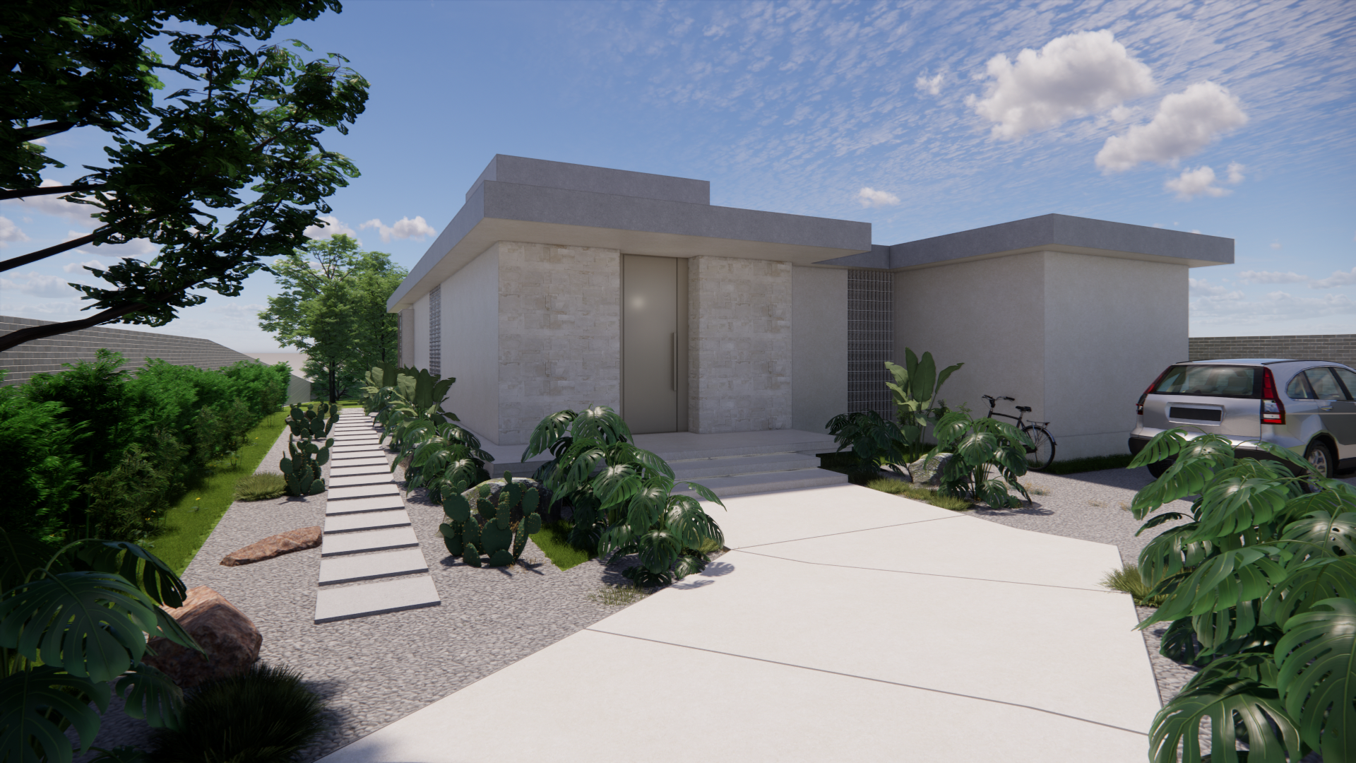 Adotando uma estética limpa, de tons neutros e linhas retas, a Casa Serena é marcada pela discrição das fachadas, tanto frontal, quanto laterais. Essa escolha assegura maior privacidade em relação ao entorno e preserva a tranquilidade da vida interiorana, sem abrir mão da sofisticação.